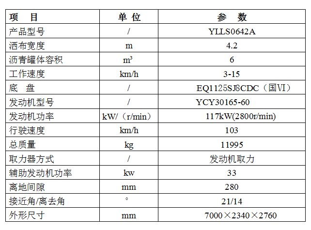 YLLS0642A型瀝青灑布車簡介